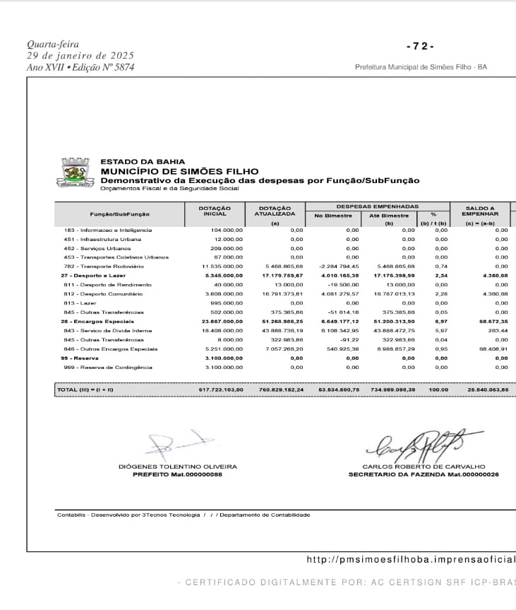 Diário do Município: Em Simões Filho, a Edição de hoje, 29, trás um Precedente Vergonhoso, documentos oficiais com assinatura do ex-prefeito