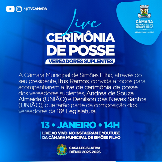13/01/2025Nesta segunda-feira (13), às 14h, o plenário da Câmara de Vereadores de Simões Filho será palco do cerimonial de posse…
