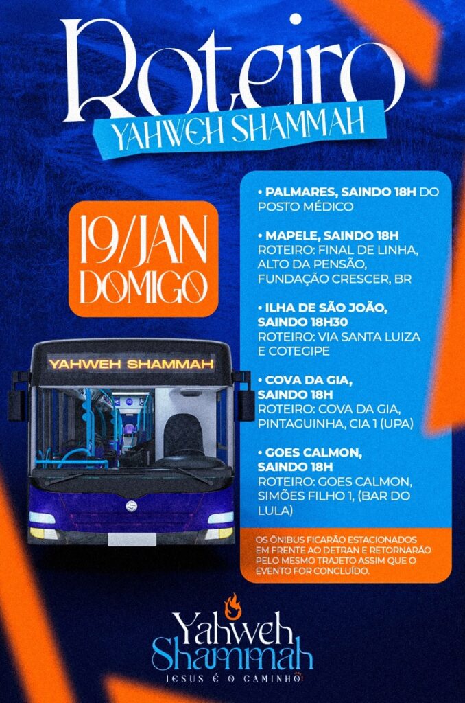 MOBILIDADE URBANA: Yahweh Shammah – 2025, divulgado roteiros de ônibus, população terá transporte gratuito