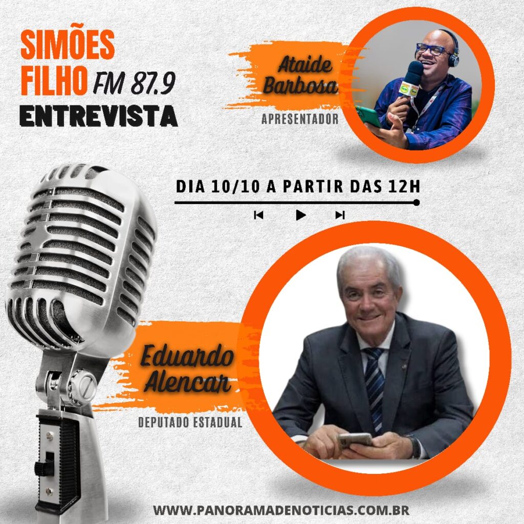 10/10/2023Simões Filho: O deputado Eduardo Alencar, (PSD), estará presente, em entrevista exclusiva, hoje, (10), na Simões Filho FM - 87.9…