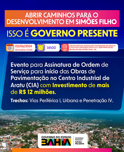 02/06/2024Simões Filho: Ciente da estratégica importância para diversos segmentos empresarias, o Governo do Estado da Bahia, fará na próxima segunda,…