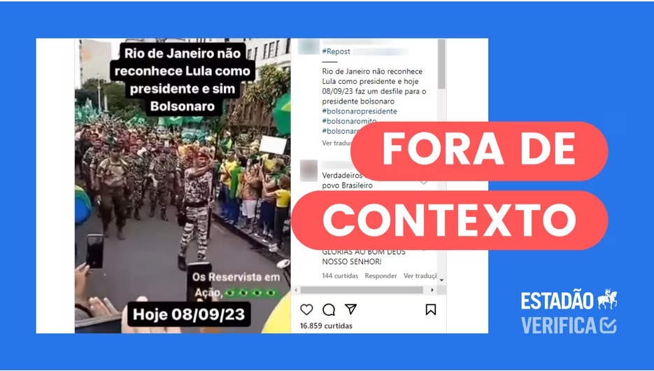 FAKE NEWS: Vídeo mostra protesto bolsonarista em 2022, não desfile de reservistas no 7 setembro de 2023