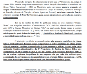 Fonte: Redação Nacional, com informações da 4ª PROMOTORIA DE JUSTIÇA – SIMÕES FILHO – ESCRITÓRIO REGIONAL DO MINISTÉRIO PÚBLICO DA BAHIA –