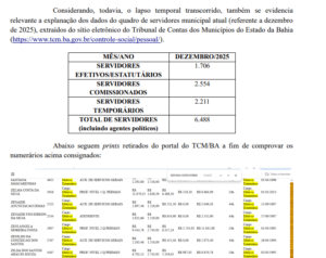 Nota Crítica: O relatório da Secretaria de Administração pode atestar convocações, mas não justifica a manutenção de um exército de 2.713 comissionados em uma cidade de médio porte. O Judiciário baiano enfrenta aqui o desafio de decidir se a “conveniência política” pode, de fato, anular a regra do concurso público.